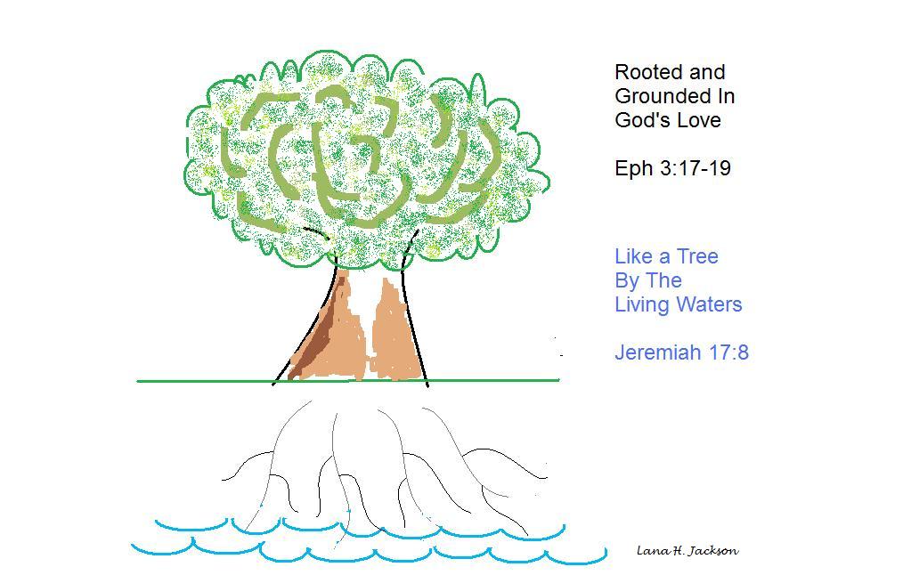 Graphic – “Tree Rooted in God’s Love”  by Lana H. Jackson